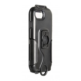 Específica para el modelo de smartphone, no impide el uso de los botones laterales. Permite utilizar la cámara de fotos. Impermeable, con orificio para cable de carga. Protección interna de silicona. Película frontal transparente que no altera las funciones táctiles. Cable de seguridad incluido. Específica para soportes del sistema Optiline